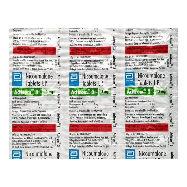 Discover the power of Acitrom 3 Tablet, a meticulously formulated medication designed to support your well-being with precision. Trusted by healthcare professionals, Acitrom 3 Tablet is crafted to help regulate blood clotting, ensuring your cardiovascular health remains a priority. Whether you're managing specific medical conditions or following your doctor’s prescription, this product is here to make a difference.