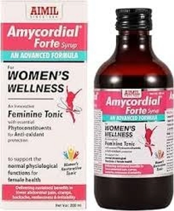 Reclaim Your Health Naturally! Introducing Amycordial Forte Syrup, a premium herbal formulation from the trusted house of Aimil Pharmaceuticals. Expertly crafted to support women's health and overall well-being, this 200 ml syrup is an ideal addition to your wellness routine.