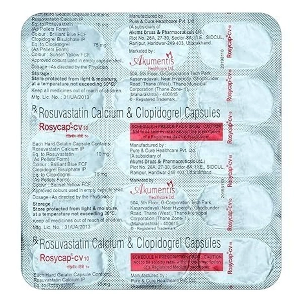 Take charge of your cardiovascular health with Rosycap Cv 10Mgcap, a trusted product from the house of Akumentis Healthcare Ltd. Designed to support your heart health, this product combines quality and efficacy, making it an essential part of your daily health regimen. Whether you’re managing cholesterol levels or seeking preventive care, Rosycap Cv 10Mgcap is here to help.