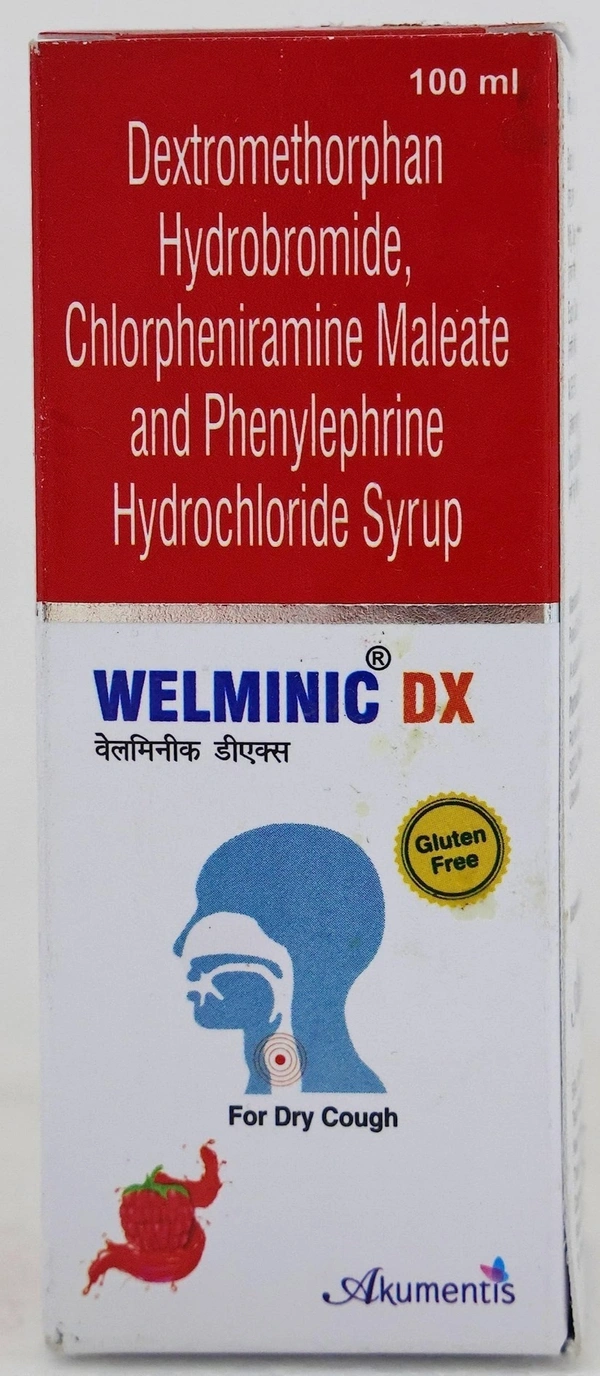 Breathe easy with Welminic Dx Syrup, a premium formulation from the house of Akumentis Healthcare Ltd. Specially designed to provide effective relief from respiratory discomfort, this 100 ml syrup is your reliable solution for managing cough and related symptoms. Whether you're dealing with a dry or persistent cough, Welminic Dx Syrup is here to help you feel better, faster.