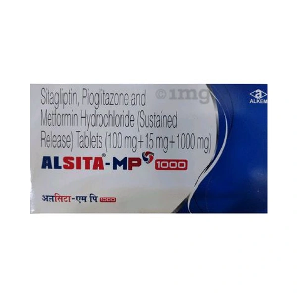 * Alsita-MP 1000 Tablet SR is indicated as an adjunct to diet and exercise to improve glycemic control in adults with type 2 diabetes. It controls your blood sugar levels and helps prevent serious complications in the future. Your doctor may prescribe it alone or along with other diabetes medicines.