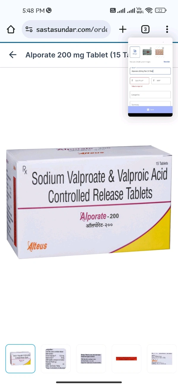 * Product information: Alporate 200 Tablet CR is a combination of two medicines used to treat epilepsy, a neurological disorder in which there are recurrent episodes of seizures or fits. It controls the abnormal activity of the brain, relaxes the nerves and hence, prevents seizures or fits.