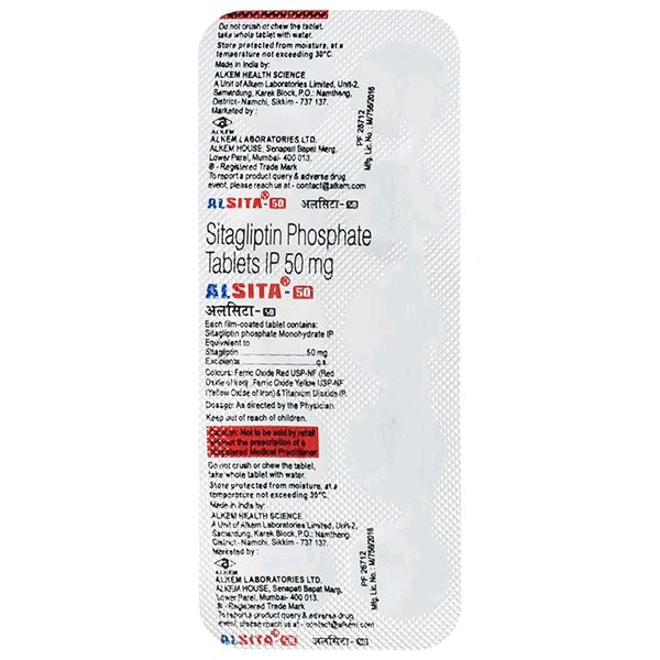 * Alsita 50mg Tablet is an antidiabetic medication. It works by increasing the release of insulin from the pancreas and decreasing the hormones that raise blood sugar levels. This reduces the fasting and post-meal sugar levels.