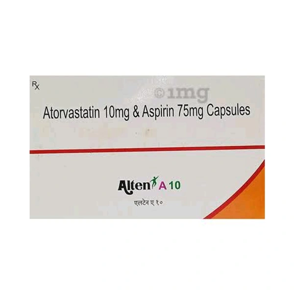 * Product information: Alten A 10 Capsule is a combination of two medicines used to prevent heart attack and stroke. It lowers the "bad" cholesterol (LDL) and triglycerides and raises the "good" cholesterol (HDL) levels in the body. Moreover, it also decreases the formation of blood clots.