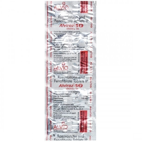 Take control of your cardiovascular health with Alviroz F 5Mgtab, a powerful combination formula designed to support your heart and overall wellness. Crafted with precision and care, each tablet brings together Fenofibrate 145mg and Rosuvastatin 5mg, two clinically-proven ingredients that work synergistically to help manage cholesterol levels, protect your heart, and promote a healthy lifestyle.