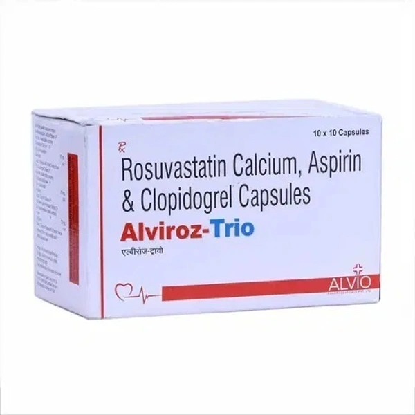 Alviroz Trio Tab is a scientifically formulated, high-quality medication designed to support your cardiovascular health and overall well-being. This powerful combination of Aspirin 75mg, Clopidogrel 75mg, and Rosuvastatin 10mg offers a triple-action approach to managing heart health, reducing cholesterol levels, and improving blood flow.