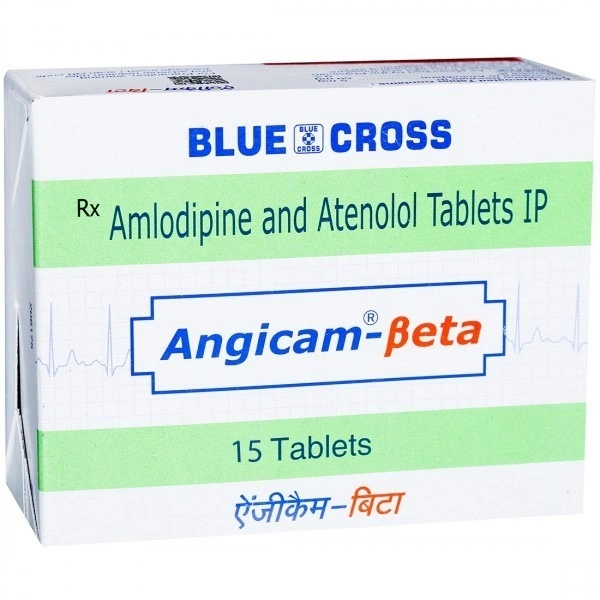 Each uncoated Angicam Beta Tablet contains Amlodipine Besylate equivalent to Amlodipine 5 mg and Atenolol 50 mg.