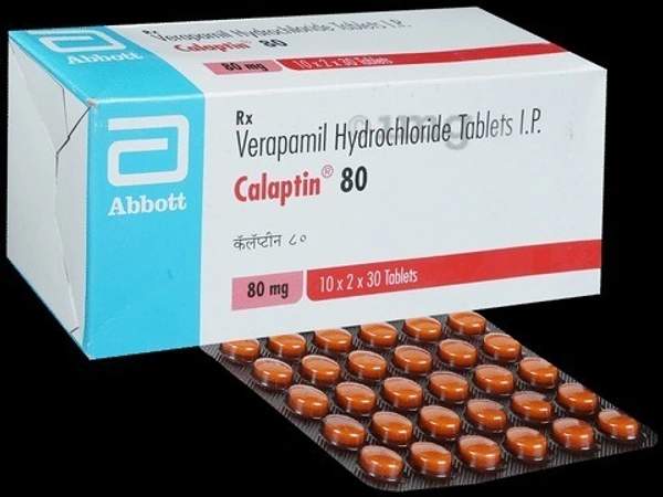 Calaptin 80 Tablet is used to treat angina (heart-related chest pain), high blood pressure, and some types of irregular heartbeats (arrhythmia). It works by relaxing blood vessels to lower blood pressure. This helps to reduce the workload of the heart.