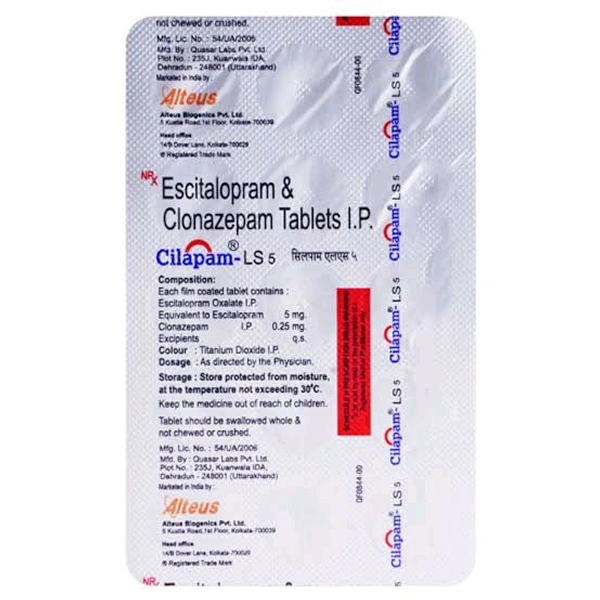 * Product information: Cilapam-LS 5 Tablet is a prescription medicine used to treat anxiety disorder. It is the combination medicine that calms the brain by decreasing the abnormal and excessive activity of the nerve cells. It also works by increasing the level of a chemical messenger in the brain which improves mood.