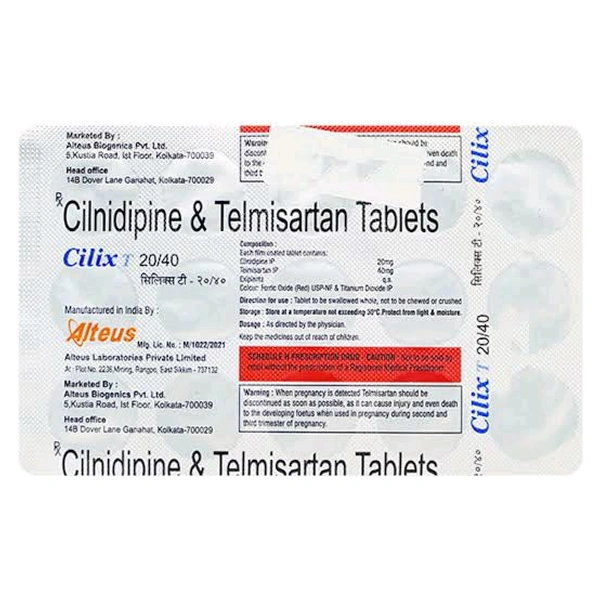* Salt Composition: Cilnidipine (20mg)+ Telmisartan (40mg)