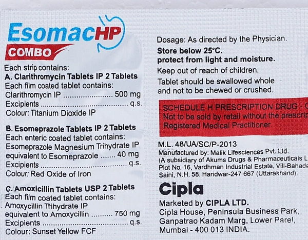 The Esomac Hp Combokits 500Gm (6 Tab), crafted by the renowned brand CIPLA LTD., is designed to provide targeted relief and comprehensive care for your digestive health. Formulated with precision and backed by pharmaceutical excellence, this product is an essential addition to your wellness routine. Whether you’re dealing with specific medical concerns or looking to maintain optimal gut health, trust the Esomac Hp Combokits to deliver effective results.