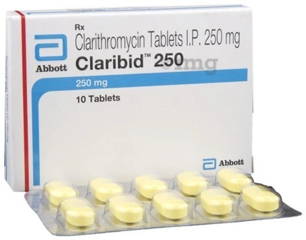 Claribid 250 Tablet is an antibiotic used to treat various types of infections. It is effective in most infections of the respiratory tract, ear, nose, throat, lungs, and skin. It is also effective against a bacteria known as H. pylori, which is associated with peptic ulcer disease.
