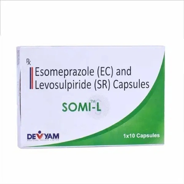 Discover the powerful combination of Levosulpiride (75mg) and Esomeprazole (40mg), thoughtfully crafted to provide effective relief and support for your digestive health. Somi L Cap is designed to target discomfort caused by gastrointestinal issues, such as acid reflux, indigestion, and related conditions, helping you get back to feeling your best.