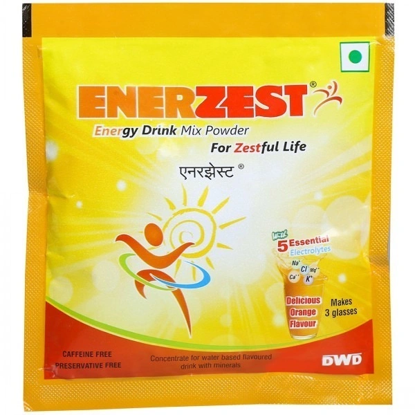 Enerzest Powder is balanced energy drink which offers instant and sustained energy along with vital salts. Enerzest Powder enriched with Sucrose, Glucose, Citric Acid, Sodium Citrate, Sodium Chloride, Potassium Chloride, Sodium Acid Phosphate, Magnesium Sulphate and Calcium Lactate. It assists in meeting the individuals/ children/ athletes recovery goals by replacing the electrolytes lost in sweat and also refuelling their energy.