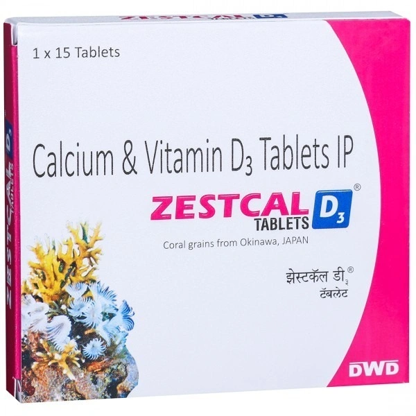 Zestcal D3 Tablet is a medication contains two active components: calcium and vitamin D3. Calcium plays a crucial role in bone structure, while vitamin D3 aids in the absorption of calcium by the intestines and promotes its deposition into bones. It is used to address calcium and vitamin D deficiencies and is also used alongside osteoporosis treatments when calcium and vitamin D levels are insufficient or at risk of becoming too low.