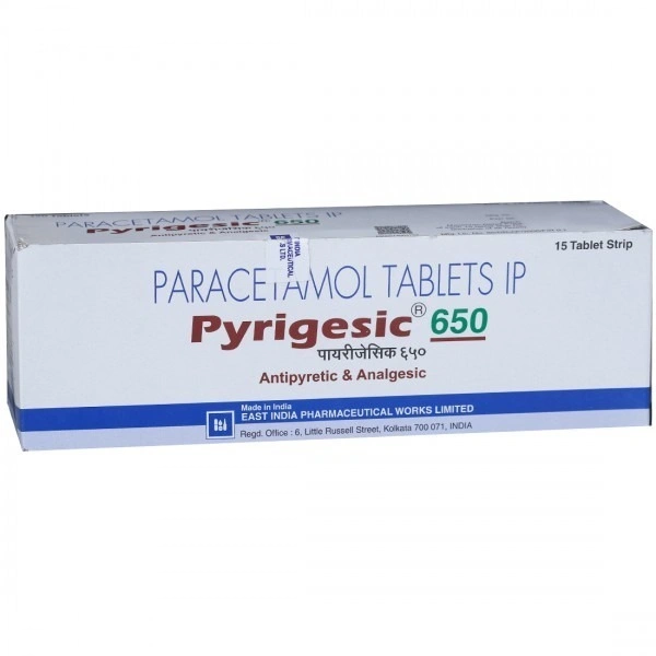 Pyrigesic 650 mg Tablet is a trusted solution brought to you by EAST INDIA PHARMACEUTICALS LTD, designed to effectively relieve mild to moderate pain and reduce fever. Each tablet contains Paracetamol 650 mg, a well-known and reliable ingredient for its dual action as a mild analgesic (pain reliever) and antipyretic (fever reducer).