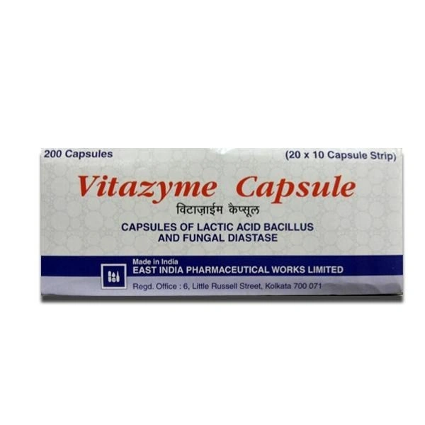 From the trusted brand EAST INDIA PHARMACEUTICALS LTD, Vitazyme Cap is your go-to solution for enhanced digestive support and overall gut health. Formulated with the perfect blend of Diastase (1:2000) 20mg and Lactic Acid Bacillus 150 million spores, this premium product is designed to help optimize digestion and promote a balanced gut microbiome.