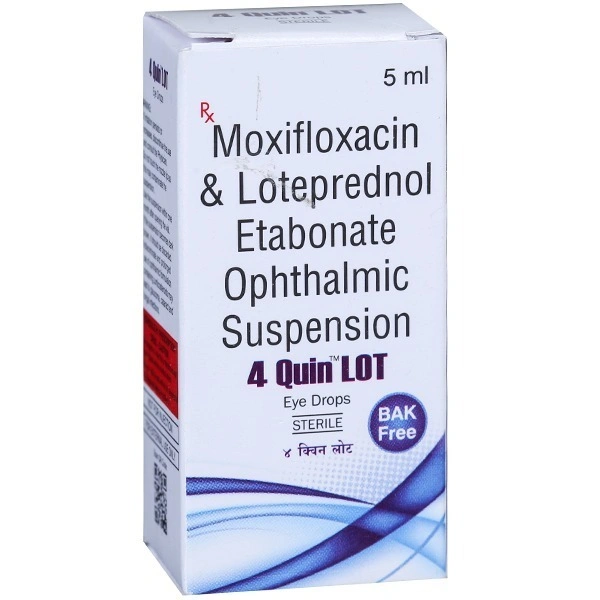 Experience the powerful combination of moxifloxacin, a fourth-generation fluoroquinolone, and loteprednol, an ophthalmic corticosteroid, with the 4 Quin Lot Eye Drop. Specially formulated to provide effective treatment for conjunctivitis, this ophthalmic solution ensures quick relief and targeted action to ease discomfort and inflammation in the eyes.