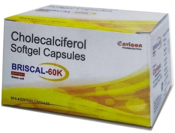 Introducing Briscal 60K Tab, a premium quality Vitamin D3 supplement by ENVICON PHARMACEUTICALS, designed to support your overall health. Each tablet is formulated to provide 60,000 IU of Vitamin D3, making it an ideal choice for addressing Vitamin D deficiencies and promoting stronger bones, teeth, and immune health. With just one tablet per week, you can take a step toward a healthier and more active lifestyle.