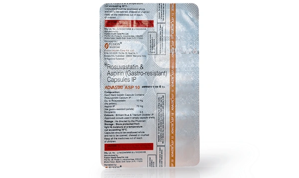 Introducing Advastat Asp 10Mg Cap, a specially formulated solution designed to support your cardiovascular health. Manufactured by the trusted brand Fusion Health Care, this high-quality product is crafted with precision to help you maintain a healthy heart and overall well-being. Each package contains 10 capsules, ensuring you have a reliable supply to meet your health needs.