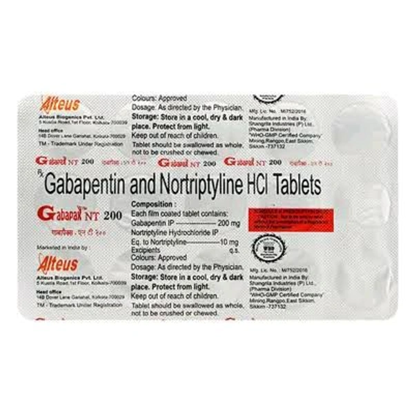 * Product information: Gabapax NT 200mg/10mg Tablet is a combination medicine used for the treatment of neuropathic pain. This medicine decreases the pain by stopping the movement of pain signals to the brain.
