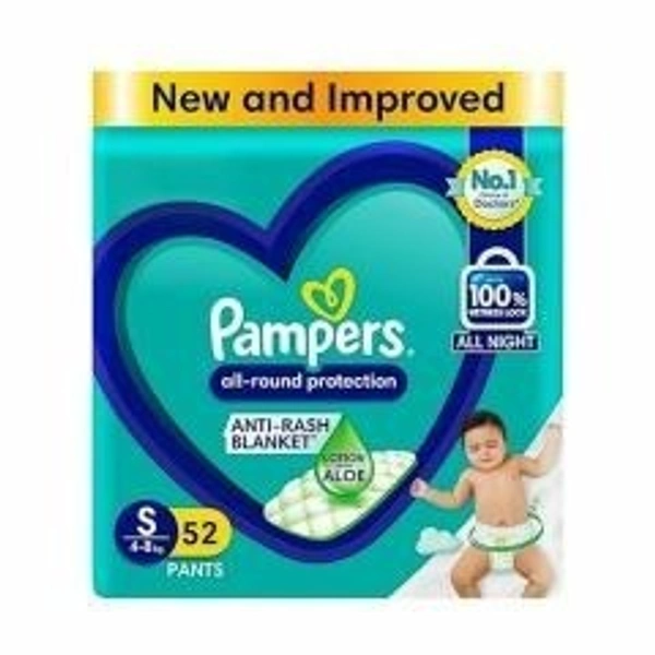 Introducing Pampers (S) - 52 Pants, the perfect solution for your baby’s delicate skin. Designed by GAMBLE HOME PRODUCTS PVT., these baby pants ensure superior comfort, dryness, and protection. Whether it’s day or night, your little one will stay happy and comfortable, giving you peace of mind. Trusted by parents worldwide, Pampers is here to provide the ultimate care for your baby’s needs.