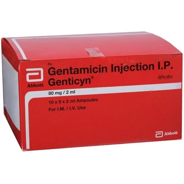 Genticyn 80mg Injection is also widely used in hospitalized patients to prevent infections. It works by stopping the growth of bacteria. It is given as a drip (intravenous infusion) or as an injection directly into a vein or a muscle under the supervision of a healthcare professional. Your doctor may shift you to another antibiotic after culture reports become available. It should be used regularly at evenly spaced time intervals as prescribed by your doctor. Do not skip any doses and finish the full course of treatment even if you feel better. Stopping the medicine too early may lead to the infection returning or worsening.