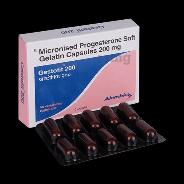 * Product information: Gestofit 200 Capsule provides progesterone, which is a natural hormone essential for reproductive health. It is used to support pregnancy in female infertility and as part of hormone replacement therapy. It helps regulate the menstrual cycle, prepares the uterus for pregnancy, and balances hormones.
