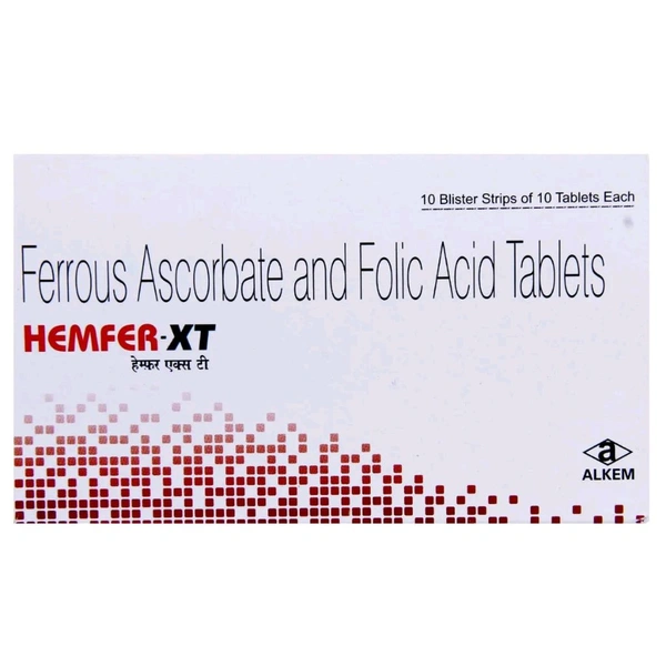 Hemfer XT Tab is a prescription-required product, thoughtfully crafted to support your health with essential nutrients. Manufactured by Alkem Pharmacia Laboratories (P) Ltd., this supplement is specially formulated with a powerful blend of Ferrous Ascorbate (an iron supplement) and Folic Acid (a vital form of Vitamin B9). Together, they work to combat iron deficiency, promote healthy red blood cell production, and support overall well-being.