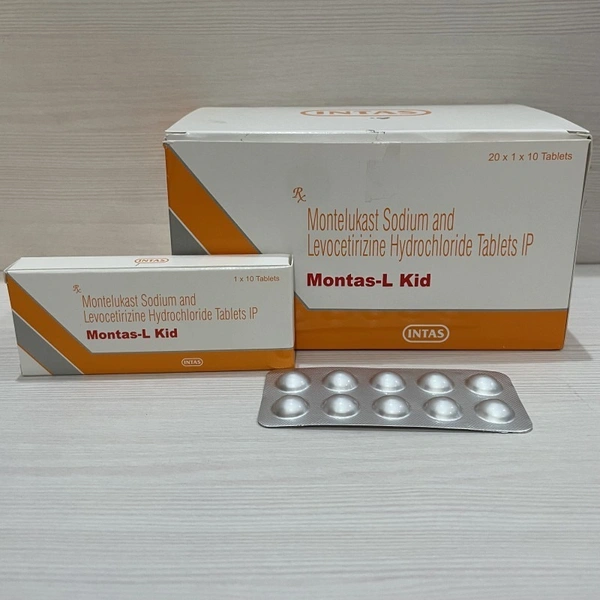 Introducing Montas L Kid Tab, a reliable solution to support your child’s respiratory health. Specially formulated with care, this product is designed to help address conditions such as allergic rhinitis, asthma, and other respiratory concerns. Manufactured by INTAS GENERIC, a trusted name in healthcare, these tablets ensure quality and efficacy for your little one’s well-being.