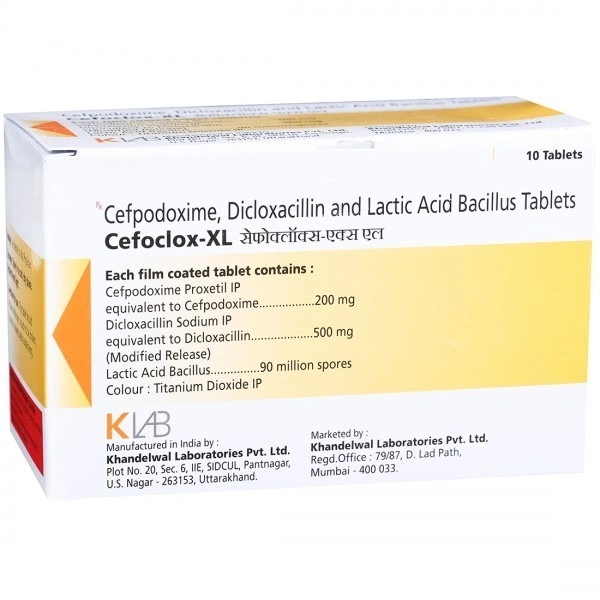Looking for a reliable and effective healthcare solution? The Cefoclox XL Tab is designed to support your well-being with its potent formulation. Each tablet combines Cefpodoxime Proxetil (200mg), Lactobacillus (500mg), and Dicloxacillin (NA), making it a comprehensive option to address various health concerns. Manufactured by KHANDELWAL LAB. LTD., this trusted product is crafted to deliver quality and efficacy.