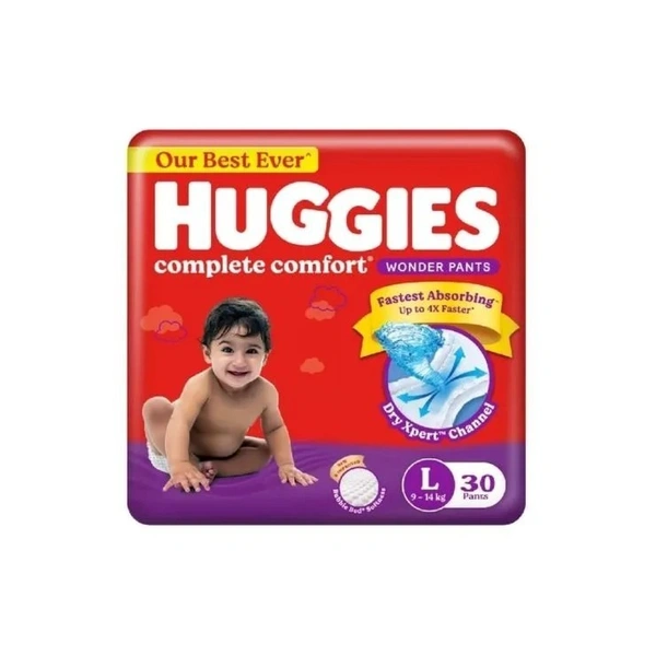 Introducing Huggies Wonder Pants - L (30 Pic), the perfect diaper solution for ensuring your baby stays happy, dry, and comfortable all day long. Designed by KIMBERLY-CLARK LEVER, a trusted brand in baby care, these wonder pants are tailored to provide unmatched absorbency and softness for your little one’s delicate skin.