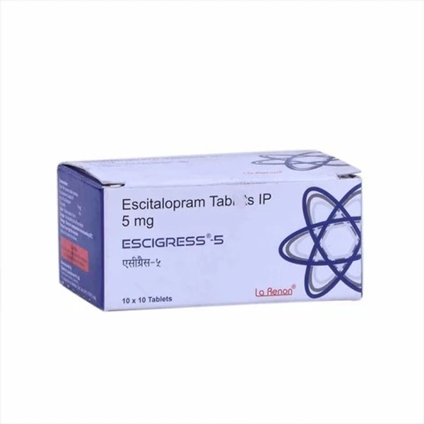 Escigress 5 mg tablet is a selective serotonin re-uptake inhibitor used in the treatment of depression and other mental health conditions.