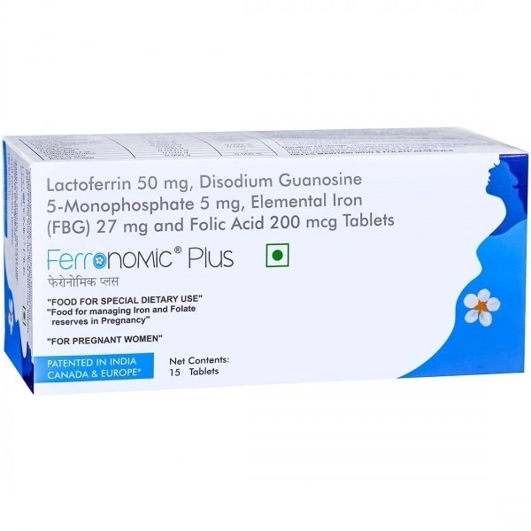 Ferronomic Plus Tablet is a dietary supplement, enriched with Lactoferrin, Disodium Guanosine-5-Monophosphate, Elemental Iron and Folic Acid that helps to maintain iron & folate reserves in pregnant women.