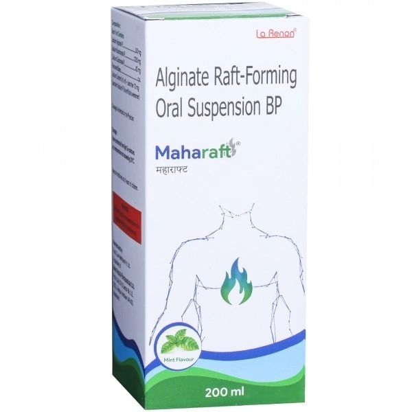Discover the trusted solution for digestive discomfort with Maharaft Syrup. Specially formulated with a unique combination of Calcium Carbonate (80mg), Sodium Alginate (250mg), and Sodium Bicarbonate (133.5mg), this syrup provides fast and effective relief from heartburn, acid reflux, and related gastric issues.