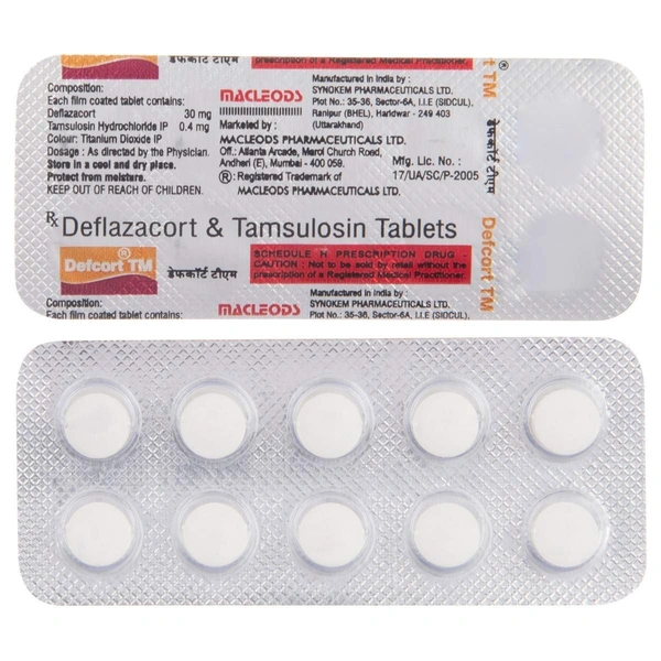Defcort Tm Tab is a carefully formulated combination of Deflazacort 30mg and Tamsulosin 0.4mg, designed to provide effective relief and support for specific health conditions. Manufactured by the trusted brand MACLEODS PHARMACEUTICALS, this product is a reliable choice for those who seek quality and efficacy in their treatment.