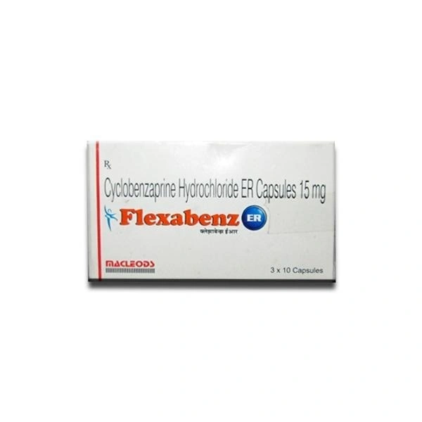 Looking for a reliable muscle relaxant to alleviate discomfort caused by muscle spasms? Flexabenz ER Tab is your trusted solution. Formulated with Cyclobenzaprine 15mg, this extended-release tablet is designed to provide sustained relief, helping you regain mobility and comfort throughout your day. Manufactured by the renowned MACLEODS PHARMACEUTICALS, quality and efficacy are assured with every dose.