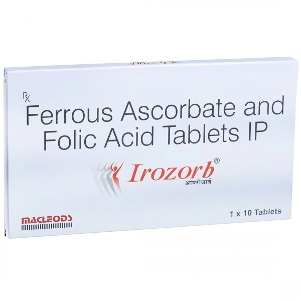 Take charge of your health with Irozorb Tab, a premium product by MACLEODS PHARMACEUTICALS. Each film-coated tablet is uniquely formulated to provide 100 mg of Elemental Iron (as Ferrous Ascorbate) and 1.5 mg of Folic Acid, ensuring you receive the essential nutrients your body needs.