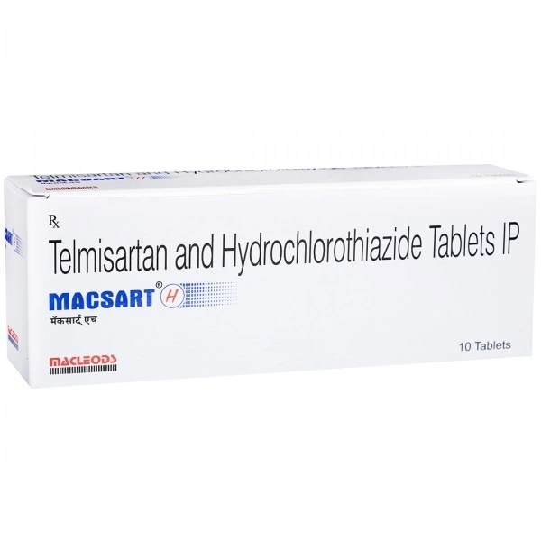 The Macsart H Tab combines the potent benefits of Hydrochlorothiazide (12.5mg) and Telmisartan (40mg), offering an efficient and reliable solution for managing high blood pressure (hypertension) and associated complications. Crafted by the trusted name in healthcare, Macleods Pharmaceuticals, this medication is designed to aid in maintaining a healthy heart and overall well-being.