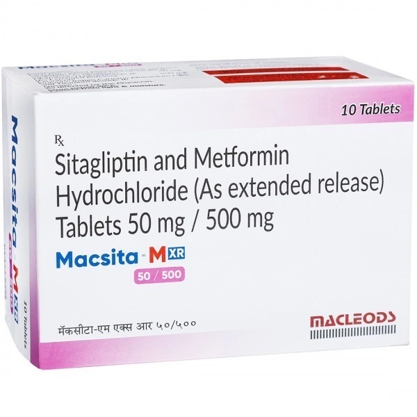 Powered by MACLEODS PHARMACEUTICALS, the Macsita M XR 50/500MG Tab is an advanced combination medication specially formulated for effective diabetes management. With a precise blend of Sitagliptin (50mg) and Metformin Hydrochloride (500mg), this powerful solution helps regulate blood sugar levels while promoting overall well-being.