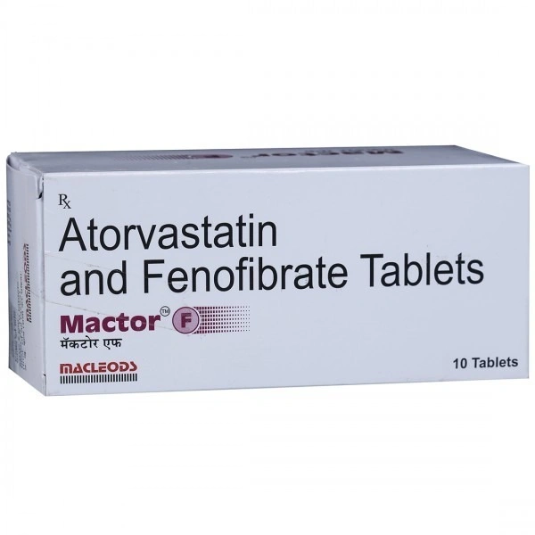 Take a proactive step towards better cardiovascular health with Mactor F Tab, a powerful combination of Atorvastatin 10mg and Fenofibrate 160mg. This innovative formulation is designed to help manage cholesterol and triglyceride levels effectively, supporting a healthier heart and overall well-being. Crafted with precision by Macleods Pharmaceuticals, a trusted name in healthcare, this medication is the ideal partner in your journey to better health.