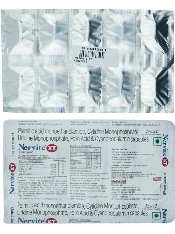 Take proactive care of your nerve health with Nervite Xt Tab. Formulated by the trusted brand MACLEODS PHARMACEUTICALS, this product is designed to support your overall well-being and maintain optimal nerve function. Each pack contains 10 tablets, thoughtfully crafted to meet your health needs.