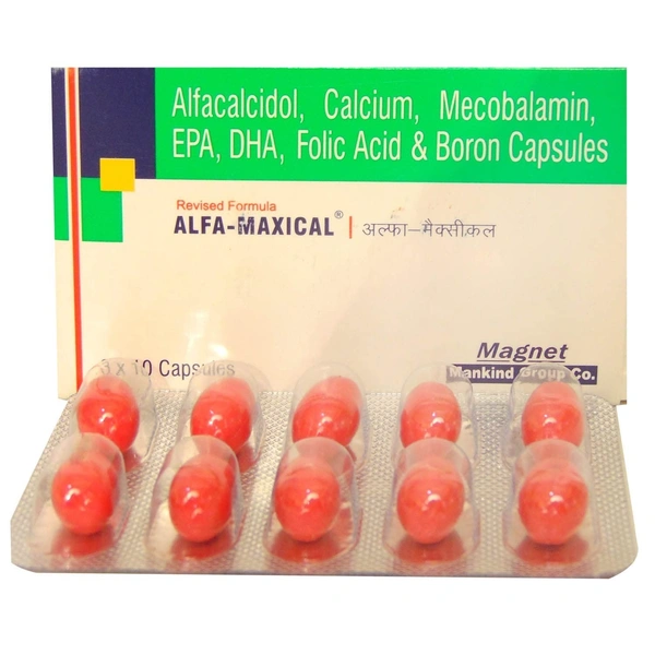 Take charge of your health with Alfa Maxical Cap, a premium-quality supplement designed to support bone strength and overall wellness. Crafted by trusted pharmaceutical brand MANKIND PHARMA, this 10-capsule pack is the perfect addition to your daily routine for those seeking enhanced calcium absorption and improved bone vitality.