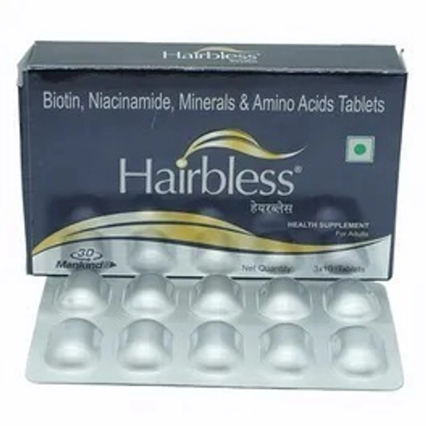 Give your hair the care it deserves with Hairbless Tab, a specially formulated supplement designed to support hair health, strength, and vitality. Manufactured by the trusted brand MANKIND PHARMA, these tablets are perfect for those looking to nourish their hair from within and combat common hair issues like thinning and breakage. Whether you're aiming for stronger roots, more vibrant locks, or overall hair wellness, Hairbless Tab is your go-to solution!