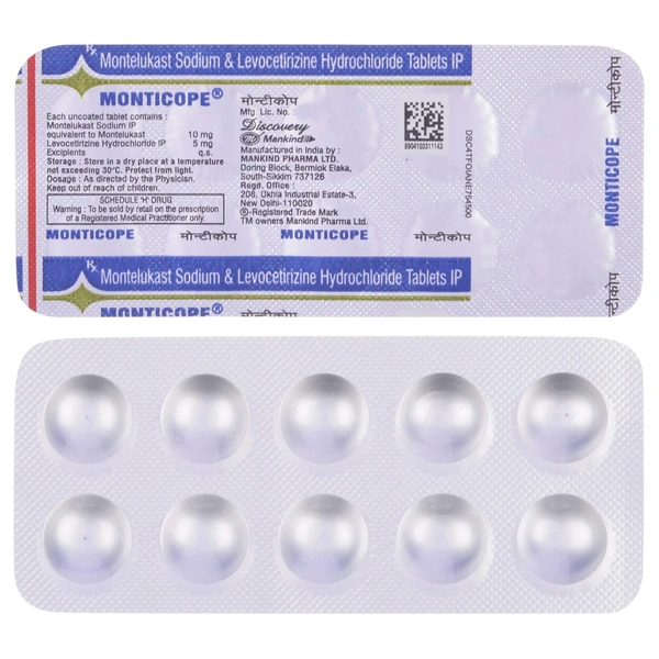 Discover Relief and Comfort with Monticope Tab, brought to you by the trusted brand MANKIND PHARMA. Whether you're addressing allergy symptoms, breathing discomfort, or related concerns, Monticope Tab is a reliable solution designed to support your well-being. With a commitment to quality and extensive expertise in pharmaceuticals, MANKIND PHARMA ensures every tablet is crafted to meet your health needs.
