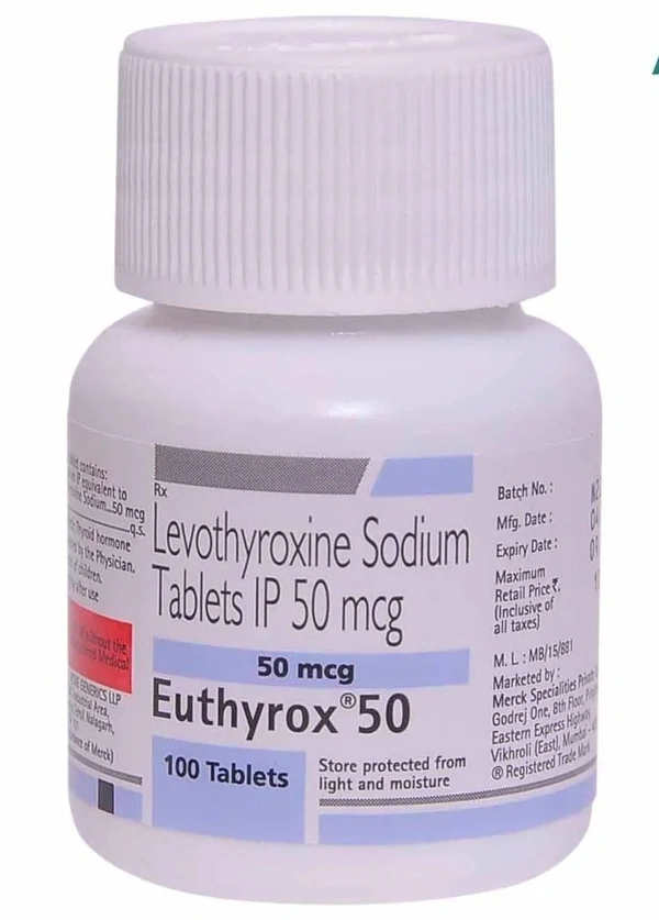 Introducing Euthyrox 50Mgtab, a reliable and effective solution for managing thyroid imbalances. Manufactured by the trusted brand MERCK, this product is designed to support your thyroid health and ensure your well-being. With a pack of 100 tablets, it provides a convenient and long-lasting supply for your daily needs.