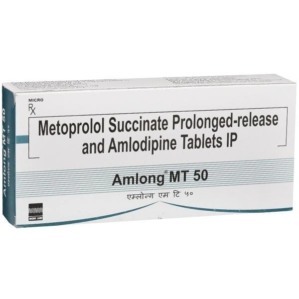 Take control of your heart health with Amlong MT 50mg Tablets, a reliable combination of Amlodipine 5mg and Metoprolol 50mg. This powerful dual-action formula is designed to support your cardiovascular wellness by helping manage blood pressure and reducing the risk of heart-related complications.