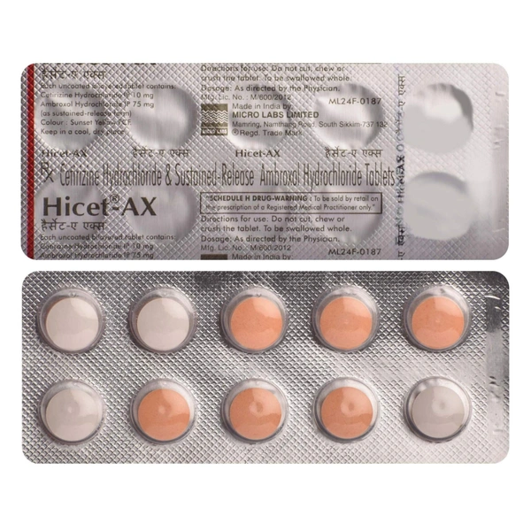 Experience fast and effective relief with Hicet Ax Tab, a trusted solution for managing respiratory discomfort and allergic symptoms. Formulated with the powerful combination of Ambroxol and Cetirizine, this medication is designed to target congestion, ease breathing, and reduce allergic reactions, helping you feel better quickly.