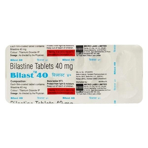 Experience effective and reliable relief from allergies with Bilast 40Mg Tab, a trusted solution designed to help you combat allergic symptoms. Whether you're dealing with persistent sneezing, runny nose, or itchy skin, this medication is formulated to ensure your comfort and well-being.