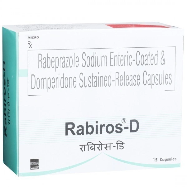 Rabiros-D Cap by MICRO LABS is your trusted solution for managing digestive discomfort and related symptoms. Combining the power of Domperidone, a dopamine antagonist, Rabiros-D Cap is designed to alleviate nausea, vomiting, and persistent bloating caused by delayed gastric emptying. It works effectively by enhancing the movement of food through the stomach and intestines, ensuring smoother digestion and improved comfort.